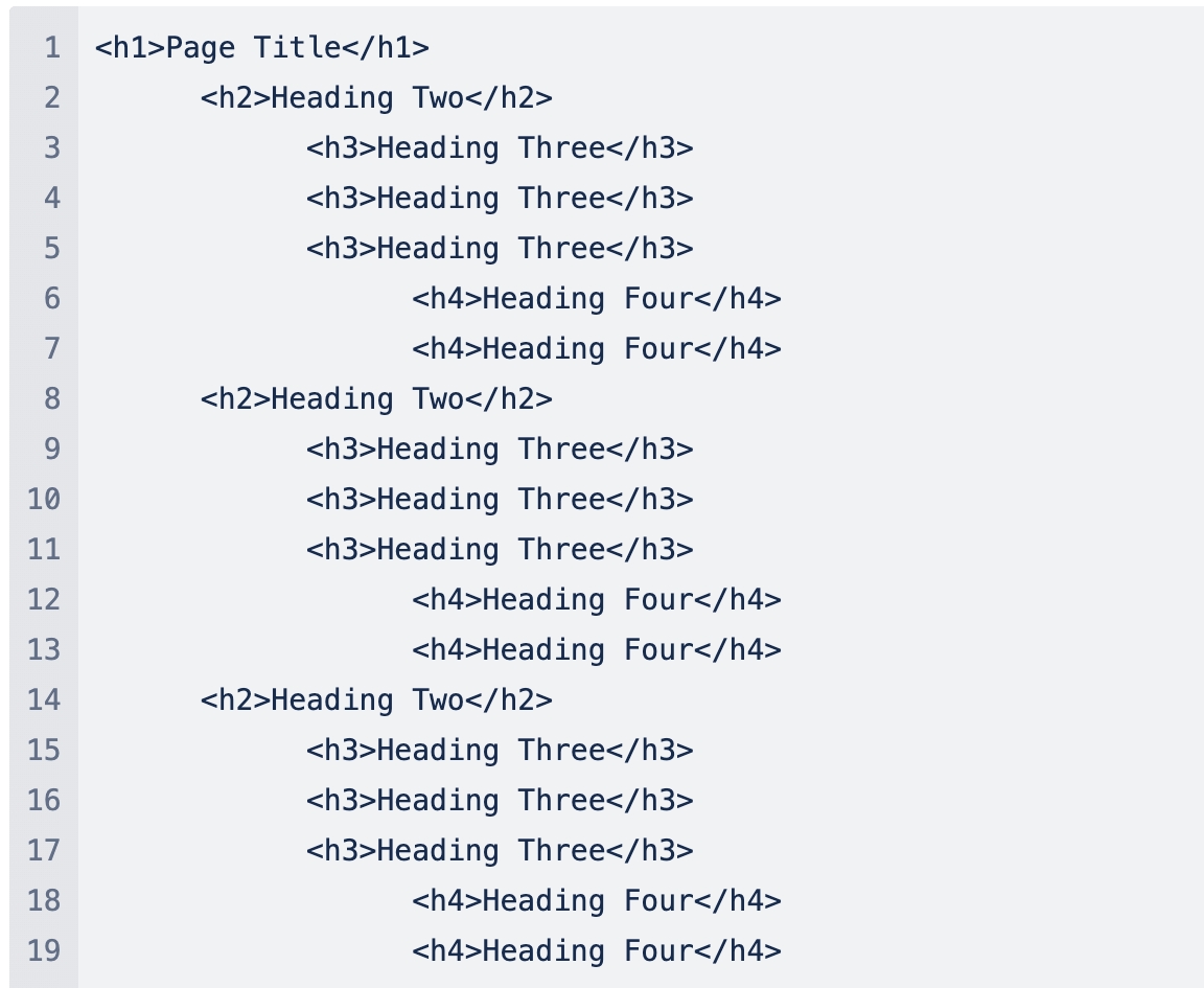 This means that the user can view a list of all of the headings on the page, or can read or jump by headings, or even navigate directly to top level headings (<h1>), next level headings (<h2>), third level headings (<h3>), and so on.