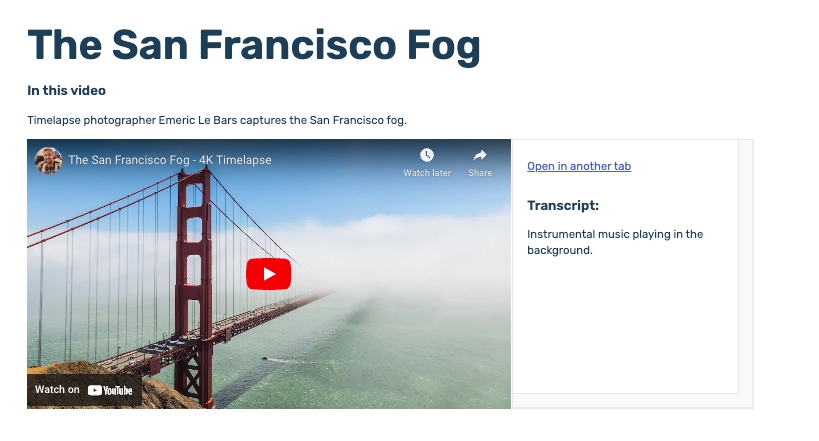 After you fill out the YouTube video section and save your page, your video will display like this: