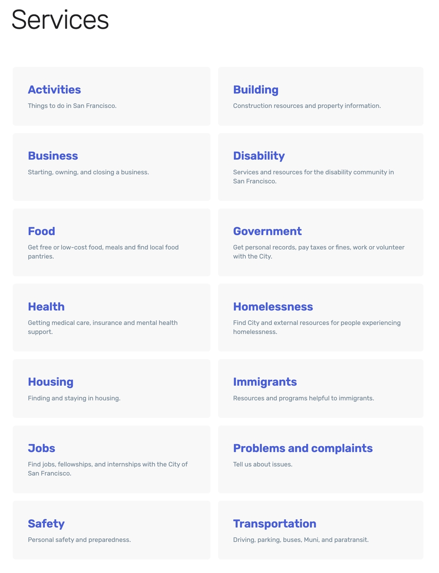 See a comprehensive list of topics on SF.gov (last updated March 2024)